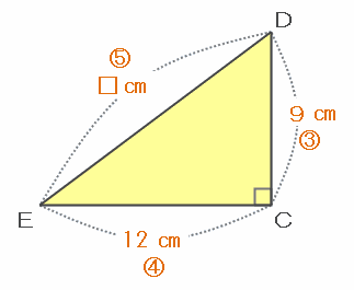 次の図の直角三角形DCEはABCと相似なので、この三角形も3辺の長さの比は短い順に3:4:5となっているはずです。