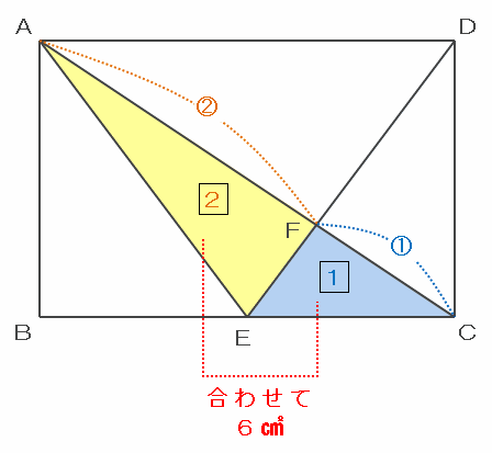 したがって、三角形AECの面積である6㎠を2:1に比例配分すれば、三角形AEFとCEFの面積をそれぞれ求めることができます。