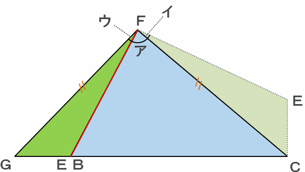 これは辺FEと辺FBが同じ長さだからこそできる技ですね。