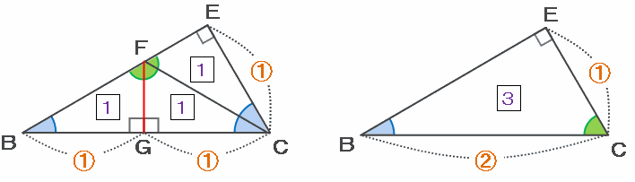 このとき、下の図の3つの三角形FBG、FGC、EFCは、