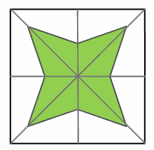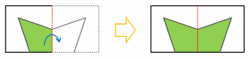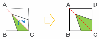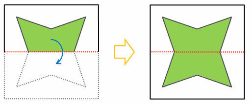 この場合も赤い点線の左右は線対称になるので、左側にある緑色の四角形が右側にもできます。