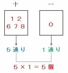 上の図で十の位と一の位の合計が6となる組み合わせは「0・6」、「6・0」の2通りあります。