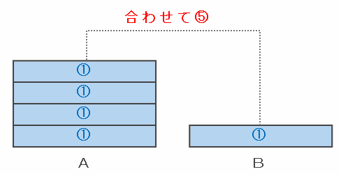 つまり、最初の水そうBの水量を①とおくと、2つの容器の水量の合計は、