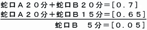 蛇口A20分+蛇口B15分=[0.65]と表せます。・・・式①