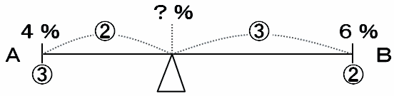 比の②は0.4×②=0.8%なので、図の?は4%+0.8=4.8%になります。