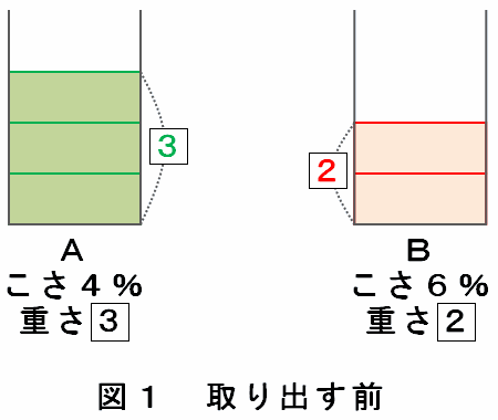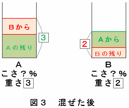 ちょっと問題文がややこしいので、どのように混ぜたのかを次のように図で確認してみます。