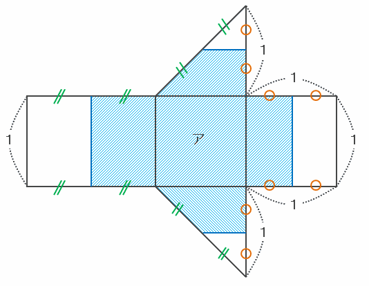 展開図を組み立ててみると、次の図のような立方体を対角線で2等分した三角柱ができます。