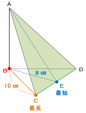 ・最短ルート→頂点BからEまでを直線で結んだときの8㎝
