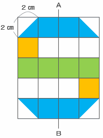 1マス2㎝の方眼用紙に次の図の青い部分のように「S」という文字を書いて切り取ります。この図形をABを軸として回転させたときにできる立体の体積を求めなさい。ただし、底面が同じで高さが等しい円柱と円すいの体積の比は3:1です。また、計算を簡単にするために円周率は3で計算しなさい。(計算・やり方をしっかりと書きなさい)