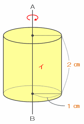 イを1回転させると、次の図のように底面の半径が1㎝、高さが2㎝の円柱になります。