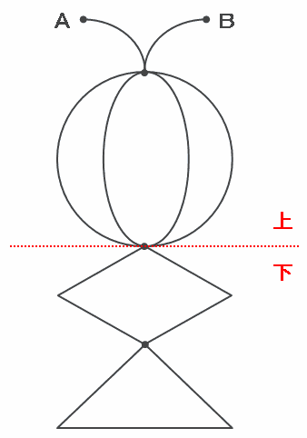 次の図で、点Aから点Bまで一筆書きする方法は、何通りありますか。