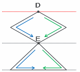 次の図のように、赤い点線よりも下の部分には「ひし形」と「三角形」がひとつずつあります。