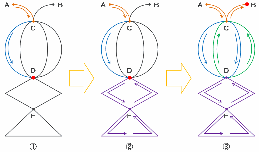 たとえば次の図のように、まずはAからCへ進んだ後、