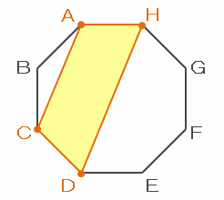 また、次の図のように点Aと1個飛ばしの位置にあるCを結んで辺ACとして、その辺を使って台形を作るとACDHができます。