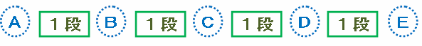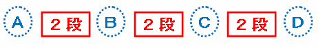 さっきと同じように、上の図のAからEのどこかに「2段」を2つあてはめます。もちろん同じ場所に「2段」を2つあてはめてもOKです。