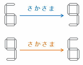 また、次の図の「6」を上下さかさまにすると「9」に、そして「9」を上下さかさまにすると「6」に変わります。