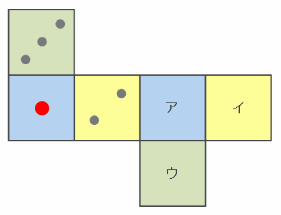 したがって、アの目は6、イの目は5、そしてウの目は4になります。