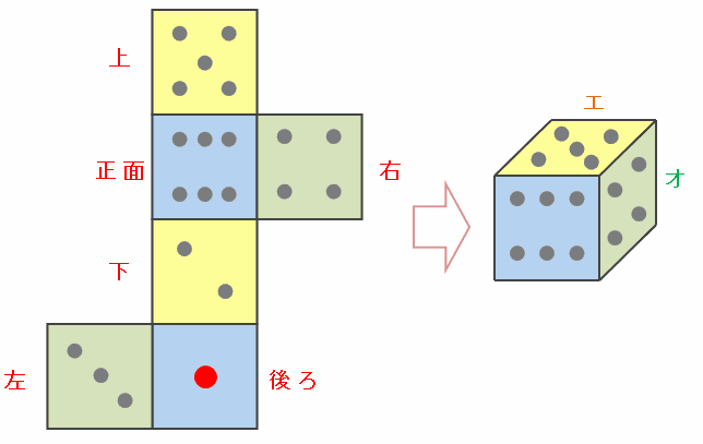 したがって、エの目は5、オの目は4になります。