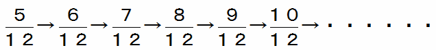 というわけで、さっそく数列の分母を12にそろえてみると、次のようになります。