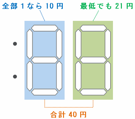 ・「20」→「2」は5円、「0」は6円なので、5+6=11円