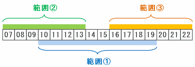 5分間の前半が「0△分」の場合、下の範囲②の中から、連続する5個の整数を使うことになります。