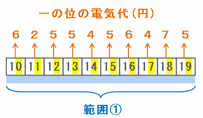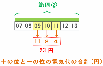 ・「12」と「13」の場合→電気代の合計は2+5+2+5=14円