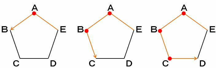 次の図を見れば分かるように、角を曲がる回数は進んだ頂点の数よりも1少なくなります。