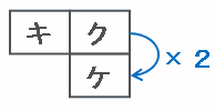 つまり、次の図のケはクの2倍の数なので、クにあてはまる数の大きさを①とおくと、ケの大きさは②と表せます。