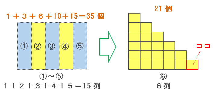 1グループ目から5グループ目までにある列の合計は、1+2+3+4+5=15列になります。
