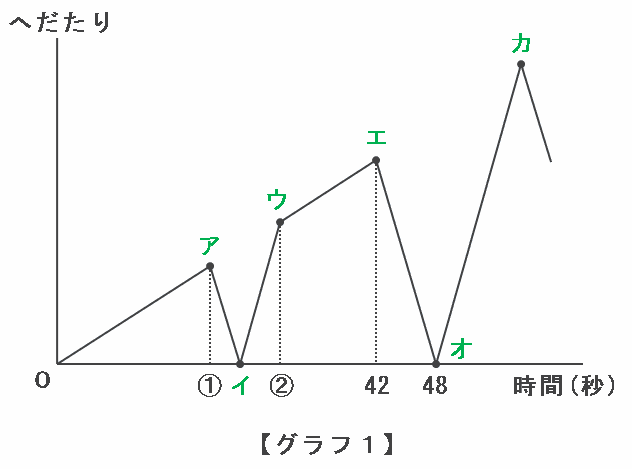 まずは次のグラフ1にあるア~カのときの2人の動きを確認してみると、