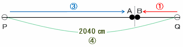 下の図のように、直線上にP地点とQ地点があり、2地点の間の距離は2040㎝あります。