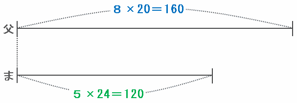 ・お父さん→8ずつ20歩進むので、8×20=160