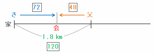 となるので、8分間に2人が進んだ距離の合計(1.8㎞)は、比の72+48=120と表せます。