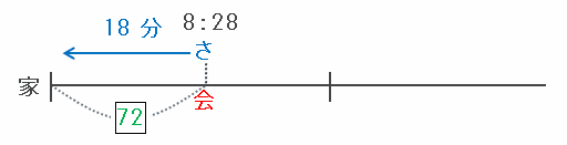 つまり次の図のように、午前8時28分に家へ向かって引き返し始めたさとし君は、その18分後に家へ到着するので、答えは8時28分+18分=午前8時46分です。
