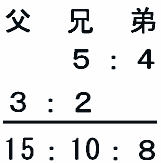 また、父の速さは兄の1.5倍なので、父と兄の速さの比は、父:兄=1.5:1=3:2です。