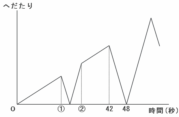 4つの地点A、B、C、Dが10㎞おきにこの順で並んでいます。車①はA地点からD地点に、車②と③はD地点からA地点に向かいます。車①、②、③の速さはそれぞれ時速40㎞、50㎞、60㎞です。B地点とC地点の間は車がすれ違うことができないので、対向車がB地点とC地点の間にいるとき、車①はB地点で、車②、③はC地点で待たなければなりません。