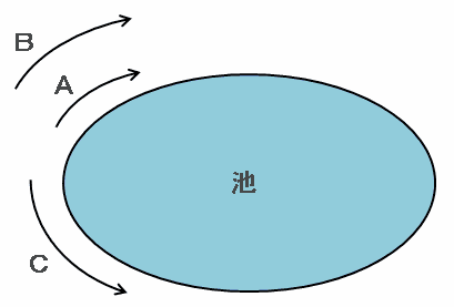 あるマラソンコースはA地点からB地点に向かって走る場合、全体の6分の1が上り坂、4分の1が下り坂、残りが平らな道となっています。