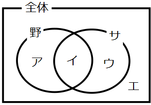 まずは問題文の条件をペン図で確認してみます。