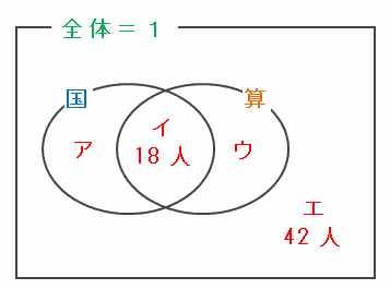 ・ア+イ+ウ+エ=1→イ+エ=18+42=60人なので、ア+ウ+60人=1
